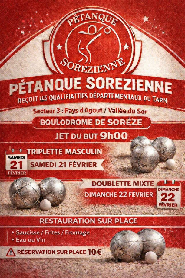La pétanque Sorrézienne organise les qualificatifs Triplette masculin et doublette mixte le 21 et 22 février du secteur_3.